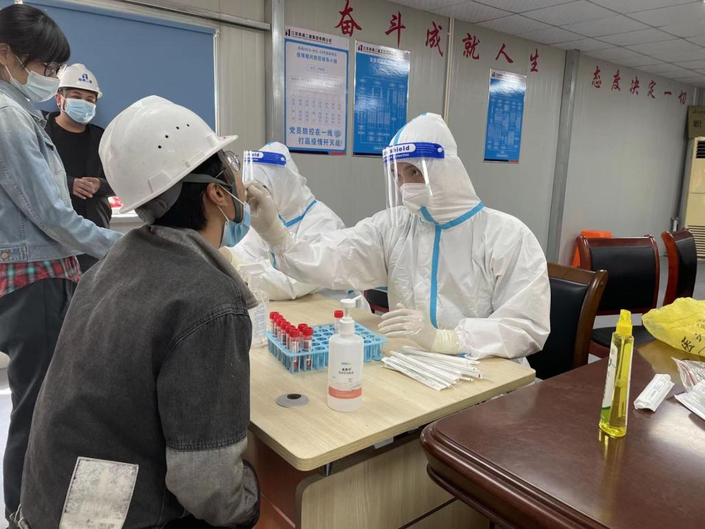 此次6名教师全部是第一次从事核酸检测工作,有4名教师是刚入职不足一年的新教师,但是这都不能阻挡他们支援苏州抗疫的热情和担当。一到苏州,他们便投入了紧张的核酸检测工作。每天他们凌晨三四点钟就起床,连续工作7个小时,每天采样多达700人,不能上厕所不能吃东西,防护服内也是相当的闷热。有时候他们还要乘车几个小时汽车,赶往较远的目的地工作。虽然舟车劳顿,但是他们顾不上休息,一下车便投入工作。工作虽然辛苦,但是他们总是坚持全心投入工作,微笑着面对一拨又一拨群众,只因他们一心只想为当地疫情防控工作尽力。