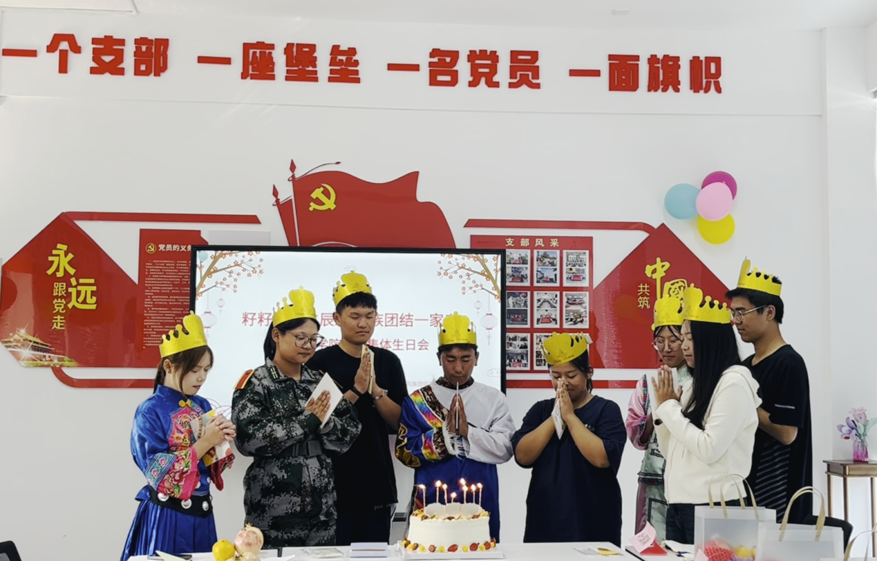 9月27日,医学技术学院与“籽籽同心”民族团结进步工作室联合举办的“籽籽同心生辰乐,民族团结一家亲”2024级新生集体生日会在医学技术学院“一站式”学生社区温馨举行。校党委委员、宣传统战部部长朱郁草,宣传统战部副部长、“籽籽同心”民族团结进步工作室负责人柏萍,医学技术学院党政领导和关工委副主任为来自满族、壮族、畲族和藏族的8名新生庆祝生日。