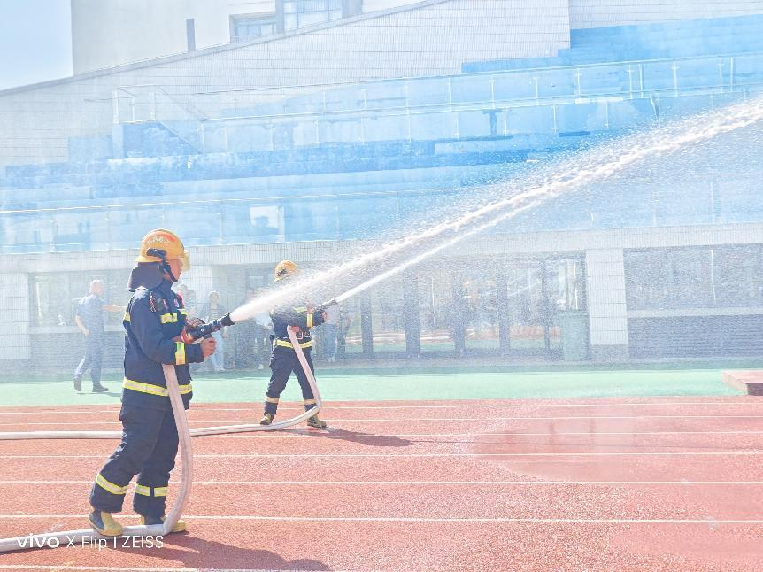 为快速消除火情,降低灾害损失,消控室确认火情后立即向119中心要求支援。城南消防救援站接到报警电话后,立即赶赴现场,对未及时撤离学生实施救援,并按规定进行了现场搜救和疏散工作。同时,现场为师生们展示了高压水枪的喷水灭火演示。