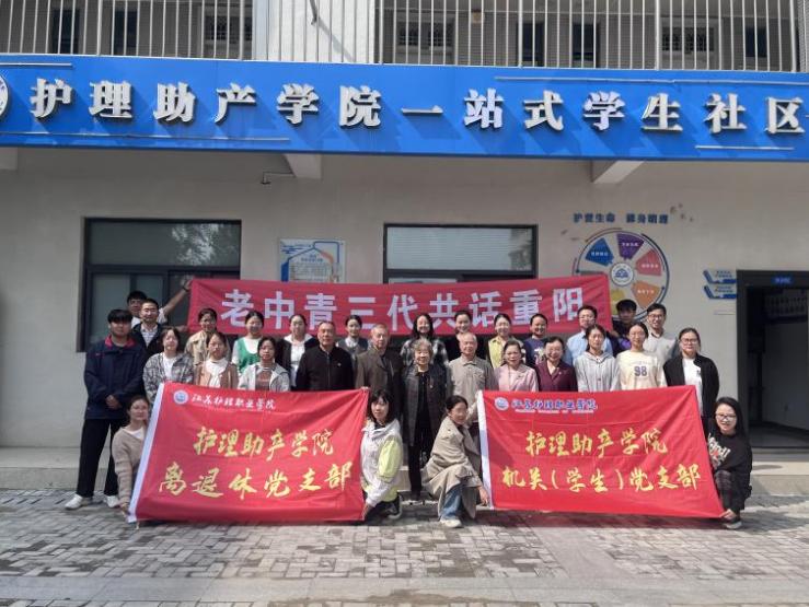 在重阳佳节来临之际,为弘扬中华民族尊老爱老的传统美德,进一步加强党员之间的交流与传承,护理助产学院离退休党支部、机关(学生)党支部于10月10日在护理助产学院“一站式”学生社区开展“老中青三代共话重阳”主题党日活动。6名离退休党支部同志,6名机关(学生)党支部同志以及7名学生代表共同参与活动。活动由护理助产学院党委副书记陈颖主持。