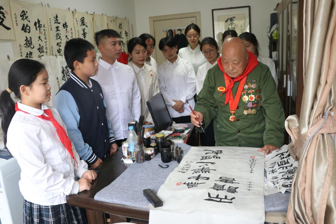 活动中,大中小学生们共同对张登瀛老人进行采访,聆听他的革命故事。张老讲述了自己入党后的成长历程、在部队中的奋斗经历以及离休后为人民服务的事迹。通过与抗战老兵的交流对话,让大中小学生近距离感受革命前辈的崇高风范,了解老兵的战斗历史,促进新时代青少年与老兵之间的思想对话和情感交流,实现大中小学思政教育的有机衔接。