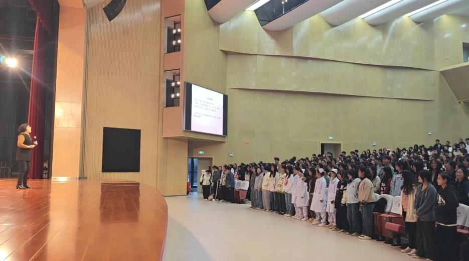 讲座接近尾声时,李教授以一首《你的眼神》将现场气氛推向了高潮。师生们在礼堂中齐声高唱,共同在歌声中领略生命之美那源源不断的活力。