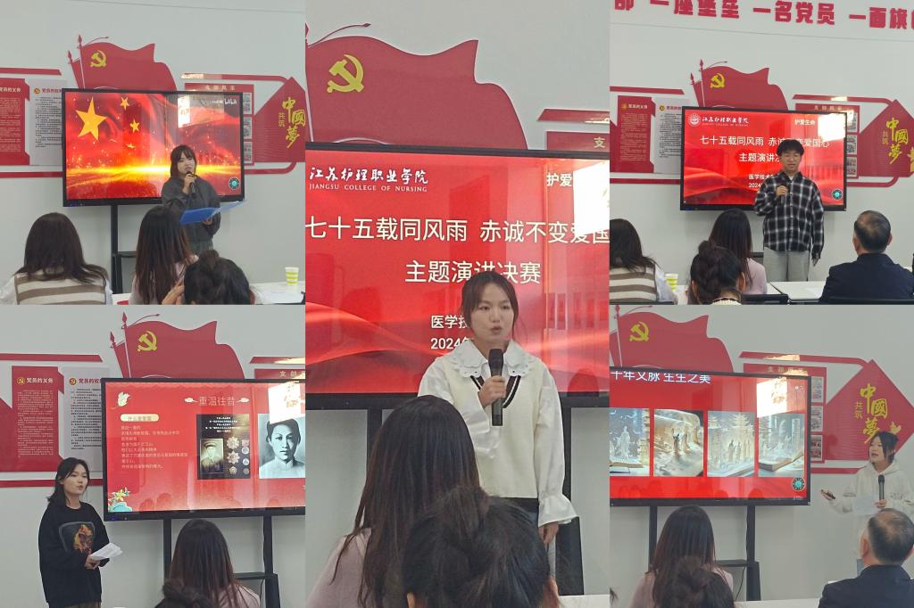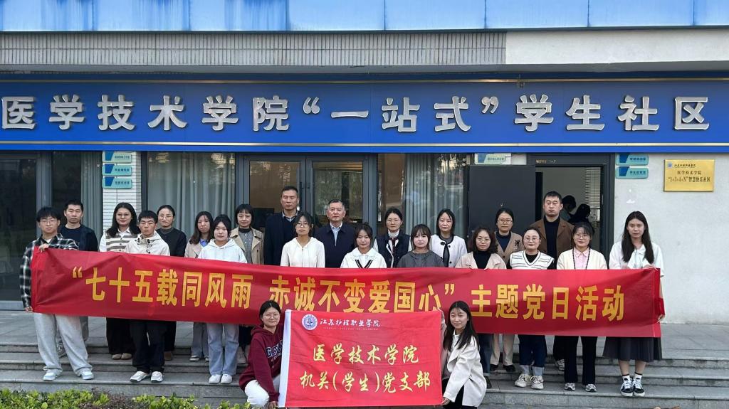今年是中华人民共和国成立75周年。为进一步激发全体师生的爱国热情,增强历史使命感和责任感,10月30日下午,医学技术学院“一站式”学生社区、机关(学生)党支部、教师党支部、团总支共同开展“七十五载同风雨 赤诚不变爱国心”主题党日活动。我院对接社区领导、校党委宣传统战部部长朱郁草、院党总支副书记杨海涛、综合办主任朱玲、教学办主任闫梦丹、辅导员宁艳纳、张钰担任评委,全体党员和学生代表参加活动。