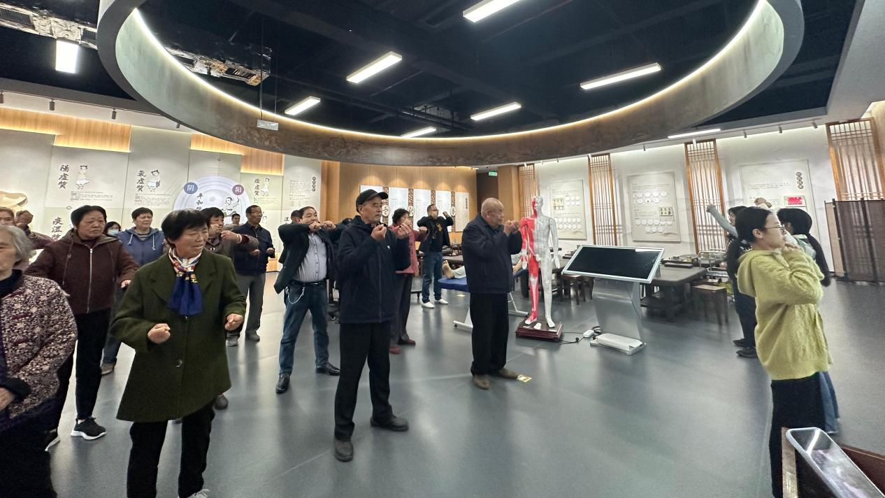 课程采用体验式教学的形式展开,心理老师引导老人运用手肘测定法对自我幸福感进行评定,帮助老人认识到幸福感可通过积极心态与切实行动得到提升,理解了老年心理健康的重要意义。教学中,心理老师结合老年人热爱运动的特点和今年会中医药文化研究实际,将中国传统健身功法五禽戏引入课堂。老人们跟随着老师的动作,一招一式地认真学习。本次课程为老年人开启了崭新健康认知之门,大家纷纷表示本次课程很有意义,对老年心理健康和科学健康观的养成有了更加深刻的理解。