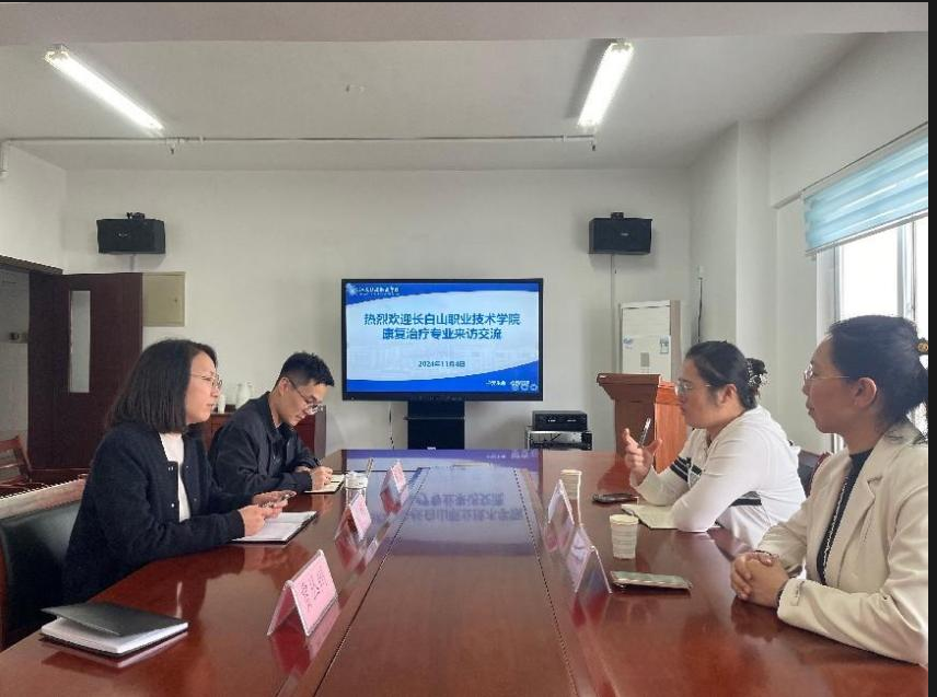 11月4日,长白山职业技术学院康复系主任李晓雨、护理系副主任王衍君来今年会康复学院进行访问交流,康复学院党总支副书记、副院长邹颖,教务办主任刘毅等参加活动。