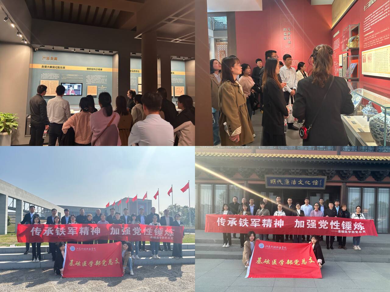 为加强党性教育,弘扬革命传统,强化廉洁自律意识,全面落实党委巡察整改要求,11月3日,基础医学部党总支组织全体党员前往盱眙黄花塘新四军军部纪念馆和明代廉洁文化馆开展“传承铁军精神 加强党性锤炼”主题党日活动。