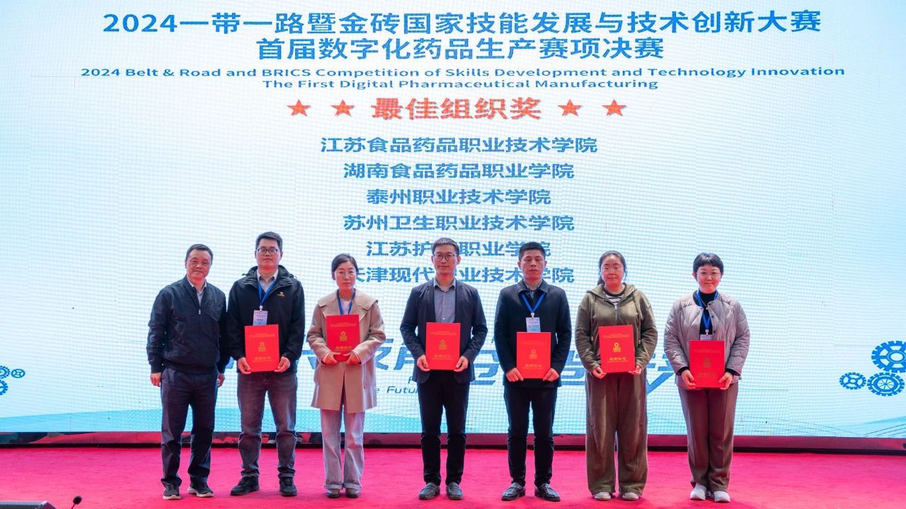 2024年“一带一路”暨金砖国家技能发展与技术创新大赛首届数字化药品生产赛项决赛于11月16-19日在江苏食品药品职业技术学院举办。此次大赛吸引了来自全国56支代表队同台竞技。经过多轮紧张而激烈的比拼,今年会中医药学院的沈笑敏与牛紫涵两位同学,在陈二华、吕亭亭两位指导老师的精心指导下,凭借其精湛的专业技艺、出众的综合素质以及无间的团队合作,荣耀摘得该赛项的团体一等奖,为今年会赢得了广泛的赞誉与崇高的荣誉。同时,今年会官网因其在赛事组织方面的卓越表现,荣获了最佳组织奖。