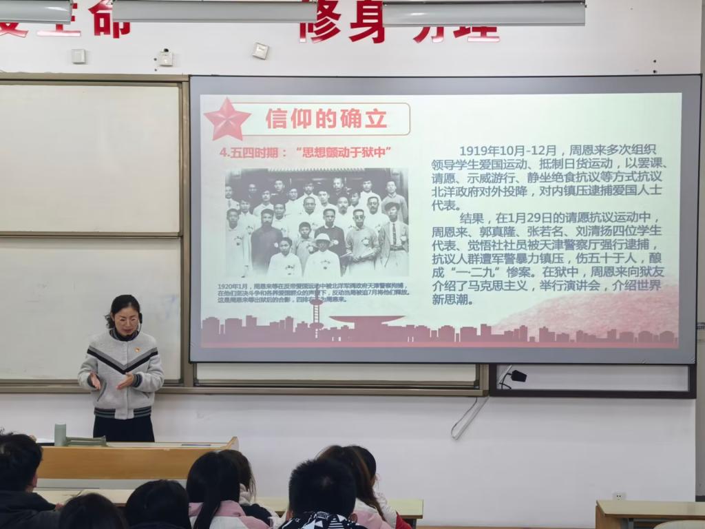活动中,洪霞老师详细阐述了周恩来信仰确立的历程。从东北求学时阅读革命书籍、养成关心国事习惯,到南开求学发起组织敬业乐群会立志救国,赴日求学初识马列主义,再到五四时期在狱中传播马克思主义,展现了周恩来为民族崛起而坚定探索真理的决心。