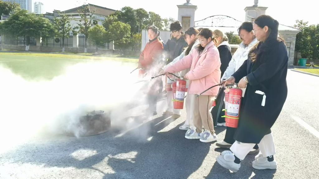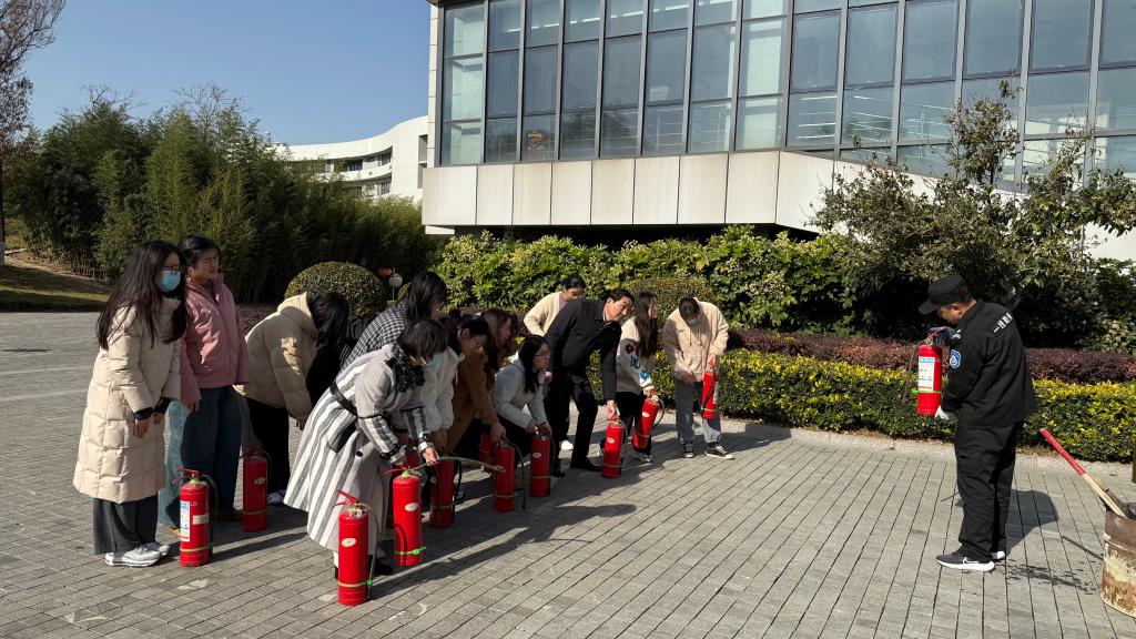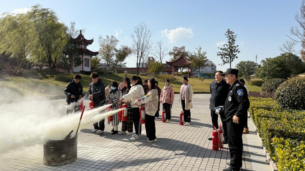 灭火疏散逃生演练结束后,安全保卫处工作人员为图书馆全体馆员和参与演练的学生志愿者讲解了如何正确使用灭火器,并指导大家进行实际操作。