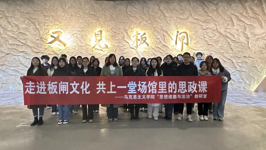 12月4日,马克思主义学院“思想道德与法治”教研室师生走进板闸遗址文化体验中心,开设了一堂场馆里的思政课。这既是一堂特别的思政课,也是一次特色实践活动,更好地丰富思政实践教育形式,促进地方文化与思政教育融合,增强思政课的吸引力和感染力。