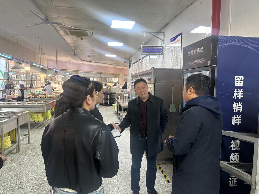 在现场检查指导阶段,经济技术开发区市场监督管理局局长刘民权、主任朱雷走访抽查了科技路校区二楼食堂,就食堂日常管理提出了意见建议。