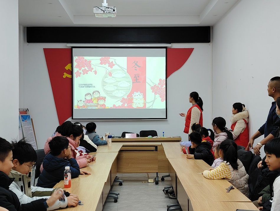 活动开始,志愿者为小朋友们讲解冬至的由来、传统习俗等知识,通过生动的图片和故事让小朋友们更好地了解冬至。