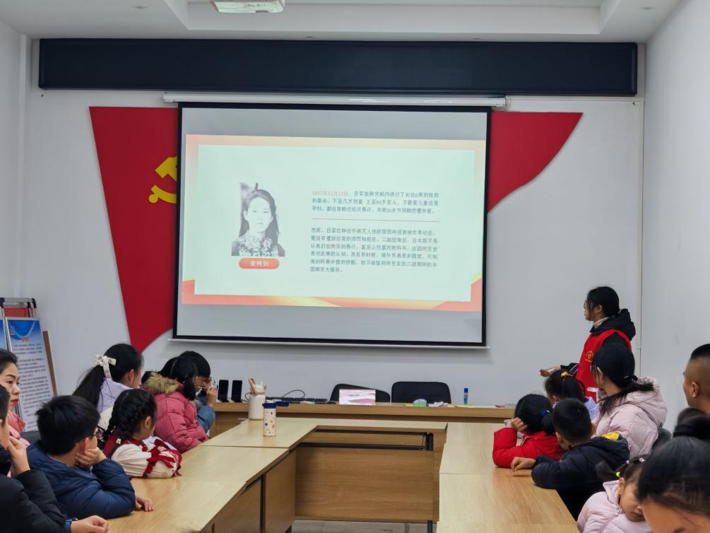 活动伊始,志愿者们在活动室通过播放和讲解纪录片,向社区小朋友介绍了国家公祭日的历史由来与意义,让孩子们深刻感受那段沉痛的历史。