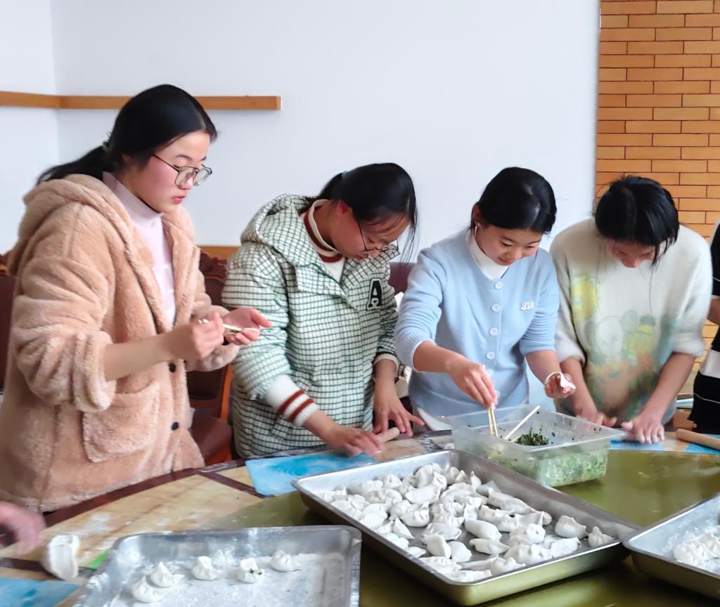 经过一番忙碌,一锅锅热气腾腾、香气扑鼻的饺子新鲜出炉。师生们围坐在一起,一边品尝着自己亲手包的饺子,一边交流冬至的传统习俗和家乡的美食故事,少数民族的同学们更是热情分享了本民族的冬至文化,现场洋溢着温馨而热烈的气氛。