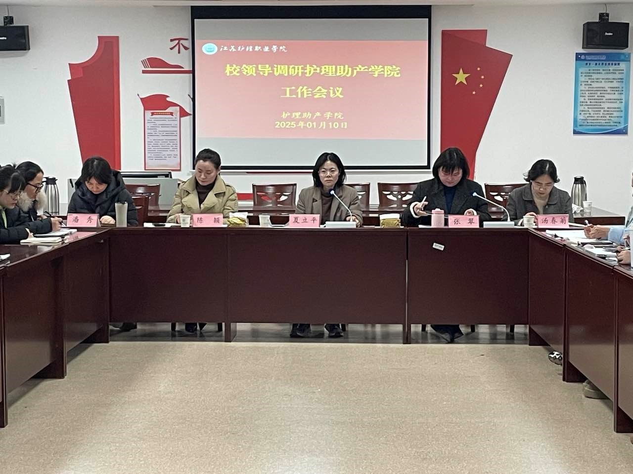 2025年1月10日下午,学校党委委员、副院长夏立平到护理助产学院开展工作调研。学院党政领导班子成员、教研室主任、专业带头人、课程负责人等参加调研会议。会议由护理助产学院党委书记张翠主持。