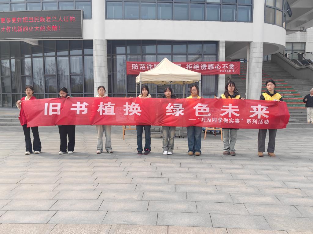 3月11日,校学生会在科技路校区开展“旧书‘植’换,绿色未来”环保活动,吸引众多同学踊跃参与。该活动旨在通过旧书循环利用,倡导绿色生活,促进阅读与环保意识的融合。