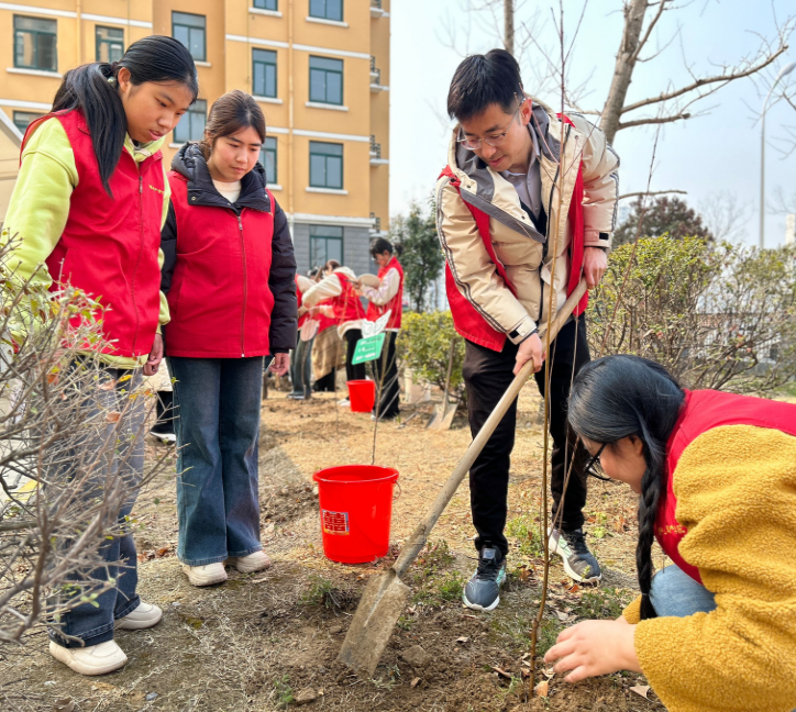 履行植树义务,共建美丽中国。2025年3月12日,护理助产学院机关(学生)党支部赴吴圩社区开展了“暖春三月学雷锋 植树增绿我先行”主题党日活动。支部教师党员及学生预备党员、入党积极分子代表共同参加了本次活动。