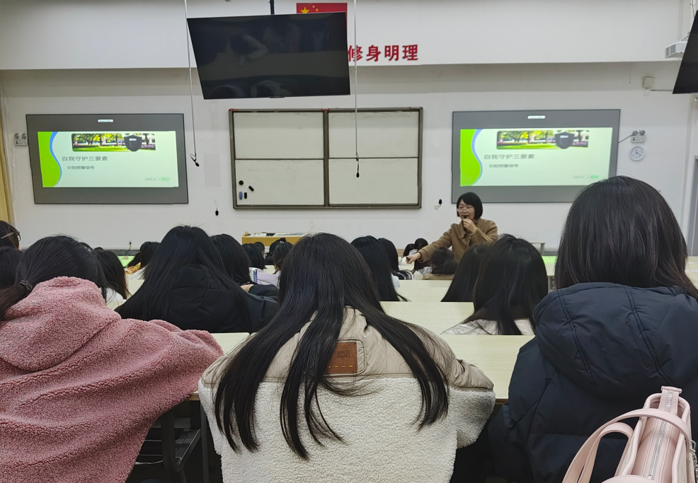 讲座伊始,肖丽娟老师以“手机防护壳”为喻,形象地阐释心理防护的双重机制:“自我觉察如同屏幕保护膜,主动隔绝伤害源;同伴支持则是缓冲气囊,在震荡时刻提供缓冲空间。”通过展示“情绪预警信号清单”,引导同学们从生理、情绪、行为三个维度识别心理危机前兆。