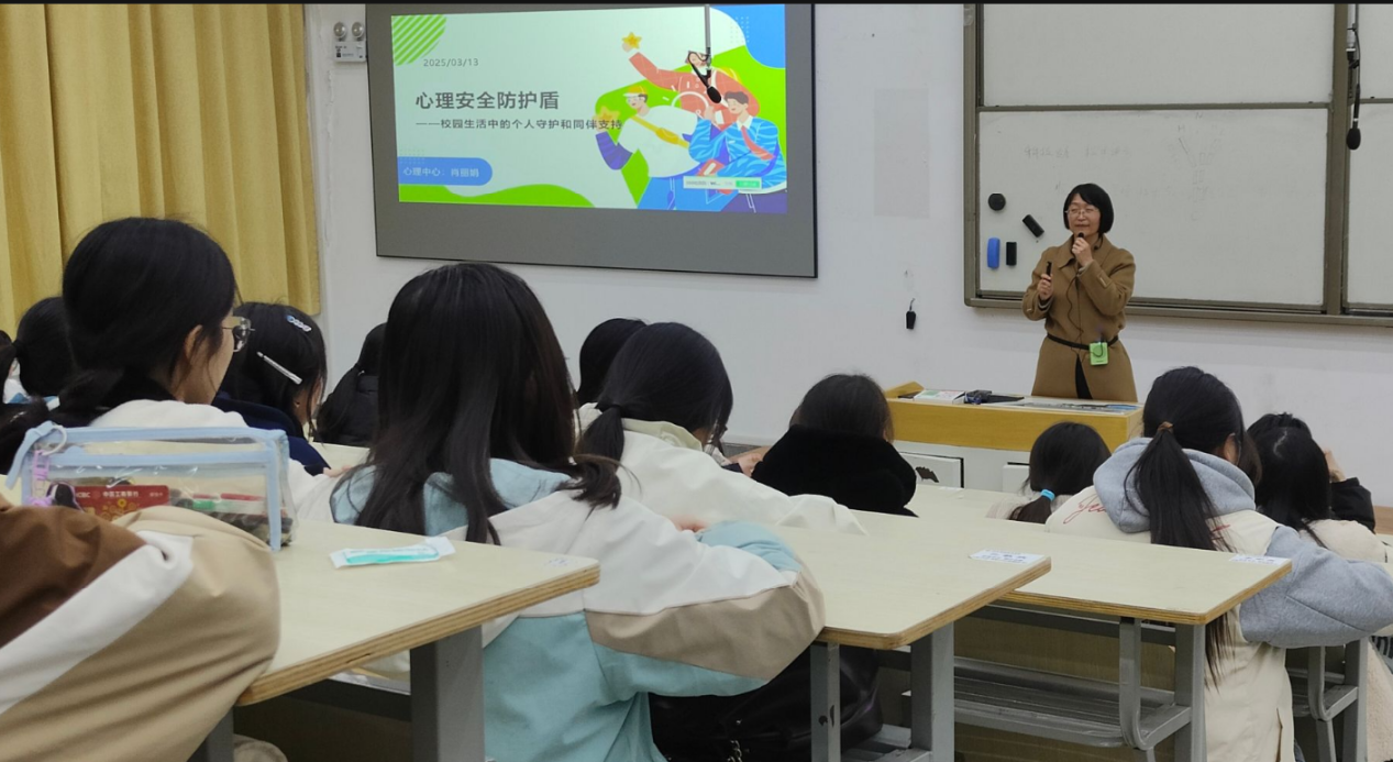 3月13日,学校教学楼114阶梯教室内暖意融融,100余名心理社团成员齐聚一堂,共同参加由学校大学生心理健康教育中心主办的“心理安全防护盾——校园生活中的自我防护和同伴支持”主题讲座。心理中心肖丽娟老师通过情景模拟、案例剖析等多种形式,为学子们带来一堂生动实用的心理健康实践课。