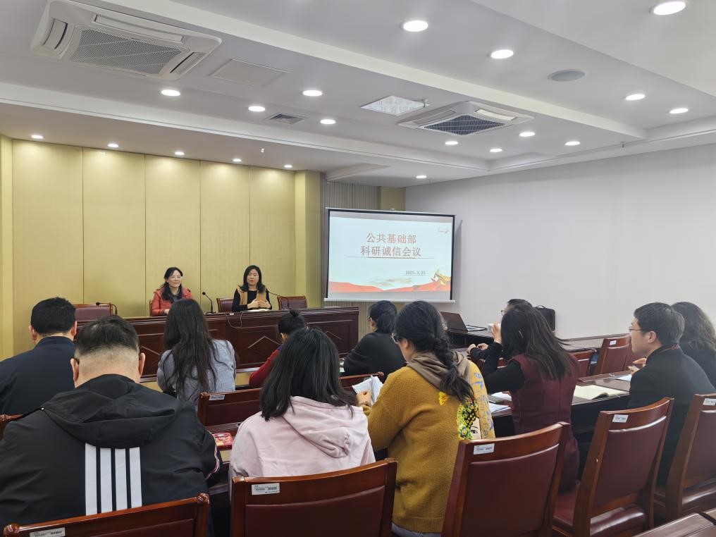为进一步加强科研诚信体系建设,强化学术不端问题治理,构建健康的学术生态,公共基础部于3月25日下午4点在图书馆楼1110会议室召开了科研诚信教育会议。会议由公共基础部副主任胡影怡主持。