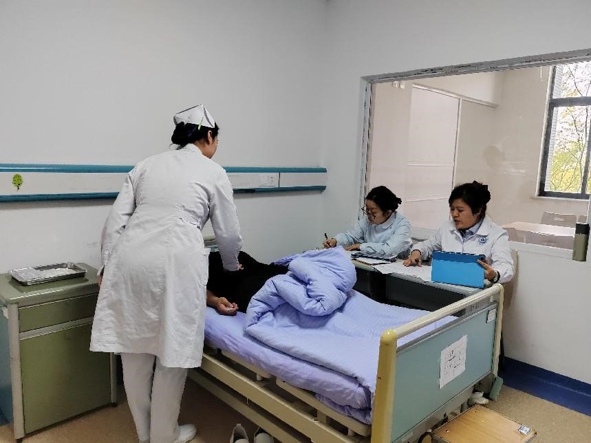 三站式考核覆盖“评估-操作-宣教”全流程。第一站护理评估与诊断,引入标准化病人(SP)模拟真实主诉,考验学生沟通技巧与病情观察能力;第二站基础护理技能操作,SP根据学生表现即时反馈沟通效果,强化“以患者为中心”的服务理念;第三站急救综合技能操作,采用智能模拟人实时反馈操作数据,强化学生急救技能,提升“急救为人人”的理念。
