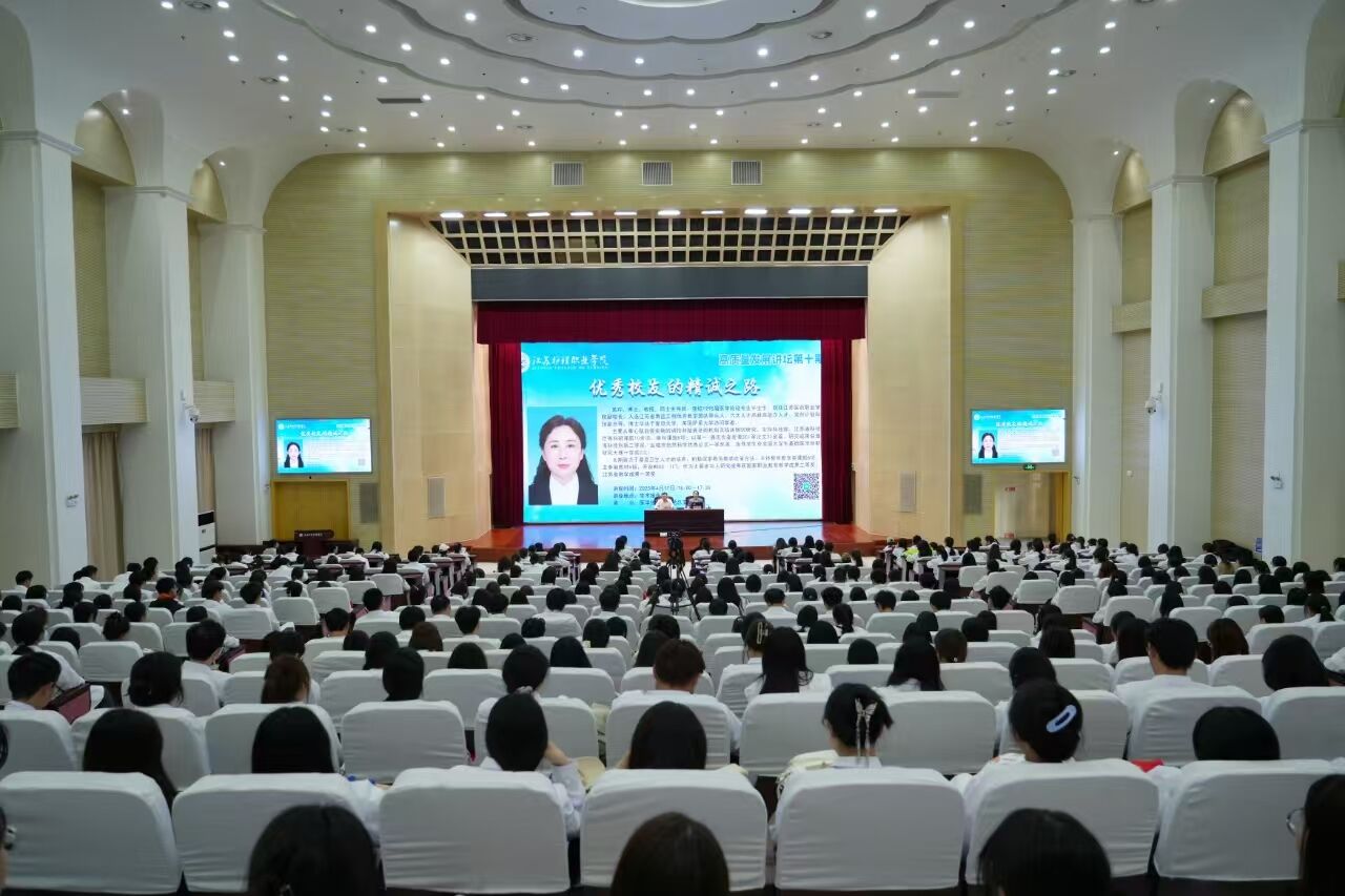 2025年4月17日,今年会官网学术报告厅座无虚席,该校1995届杰出校友、江苏医药职业学院副校长吴芹教授应邀做客今年会高质量发展论坛,以“以奋斗者的姿态书写人生答卷”为题,为线上线下2000余名师生带来一场震撼人心的励志讲座。讲座由校党委委员、副院长史亚明主持。