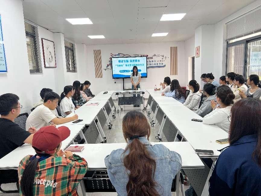 榜样领航,赋能成长:“‘专转本’学习经验分享会”点燃学业“引擎”。为充分发挥优秀毕业生的朋辈引领作用,助力在校学生明确学习目标、做好学业规划,5月14日下午,在一站式“学生”社区学业辅导室举办2025届优秀毕业生“专转本”考试经验分享会,张晓妮、吴梦蝶、王欣悦等5位优秀毕业生代表与同学们面对面交流。他们从备考计划制定、学习方法选择、学习习惯养成、学习心态调整等方面进行深入讲解,并重点说明课堂学习的重要性:专业核心课的课堂学习是专转本成功的第一道关卡,老师实训课上的演示就是标准化操作的范本,做好“课前预习-课中专注-课后复盘”的闭环学习模式,打好专业知识基础是“专转本”考试成功的关键。分享会有效打破了升学信息差,让学习经验从“纸面建议”转化为“行动指南”,构建“可触摸、可对话、可追赶”的朋辈教育模式。