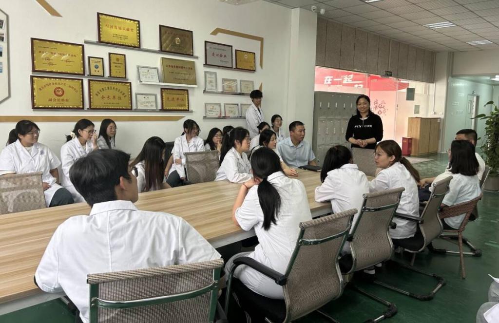 校友反哺推动实习就业“直通车”。活动中,公司经理带领同学们观看了检测室、生产车间及研发中心等区域,并从公司运营、行业发展及岗位要求等多方面进行了综合介绍,给现场师生上了一堂生动的实境课,让桐轩冠名班的同学们对企业有了更直观的了解,对“理论知识如何转化为实践能力”“职业素养如何在岗位中淬炼”等关键问题有了更深刻的认识和理解。人事部主任还就学生关心的薪资待遇、晋升通道、执业资格证等问题进行了逐一解答,并表示公司会为同学们提供“定制化”实习岗位,优先录用表现优秀的同学,希望“实习-就业-职业发展-反哺母校”的良性循环可以一直持续下去,让同学们对即将到来的实习和就业更有信心。