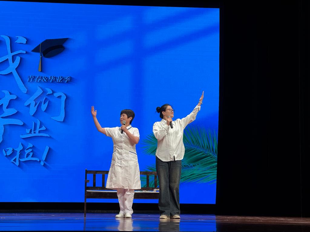 典礼现场,护理助产学院关工委副主任丁善戎、高晓阳与学生们同台朗诵。丁善戎表示:“希望同学们走出校园后,始终牢记南丁格尔誓言,以专业为基石,以仁爱为初心,在临床一线践行使命担当。无论今后去往何处,学校是停泊的港湾,老师会一直为你们遮风挡雨。”
