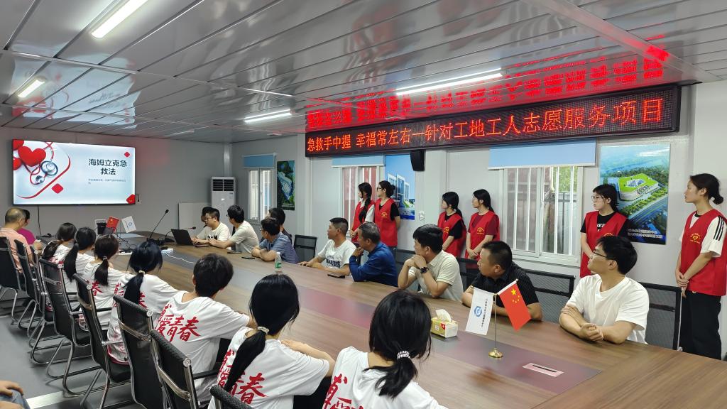 6月26日,江苏护理职业学院中医药学院“博爱青春”大学生志愿服务项目——“急救手中握,幸福常左右”正式启动。志愿者走进学校二期工地,为工人开展急救知识与技能培训,以专业所学和热情服务,为工人生命健康保驾护航 ,将“博爱青春”的温暖与力量传递到工地一线。中医药学院党总支书记韩永红、关工委副主任赵巧红,江苏省公共工程建设中心项目经理谌世荣、中亿丰建设项目经理黄振华和徐崇善、江苏省江淮监理公司陆兵和管兵、今年会官网后勤基建办参与并指导此次活动。