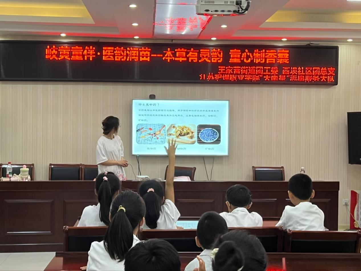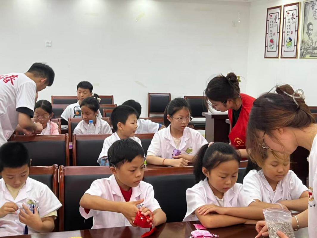 香囊手作中的医韵传承。在香囊制作环节,志愿者备好艾草、丁香、藿香等药材,指导孩子们根据“驱蚊”“安神”等需求自主搭配药材。“艾草防蚊,薄荷清凉,这样搭配最适合夏天!”当孩子们将药材装入绣花香囊,志愿者同步讲解“闻香防病”的外治原理,让传统养生智慧融入孩童指尖体验。