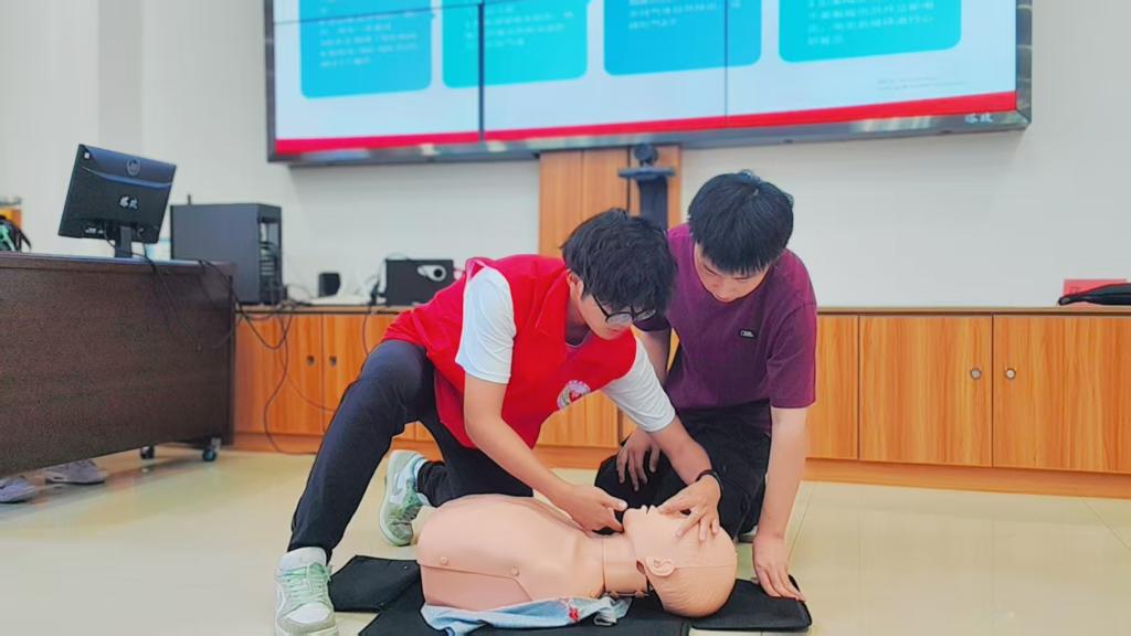 急救科普:手把手传授“救命技能”。活动现场,守护团志愿者聚焦心肺复苏、海姆立克法进行急救科普,开展了沉浸式科普教学。志愿者们一对一、手把手地指导社区居民进行心肺复苏操作,耐心讲解按压位置、深度和频率的要点。同时,志愿者耐心演示海姆立克法,并邀请社区居民现场练习,确保大家听得懂、学得会、用得上,切实提升基层自救互救能力。