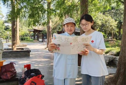 健康科普多样化,精准服务暖人心。活动现场,志愿者们开展了形式多样的健康科普活动。一组志愿者穿梭在人群中开展健康知识问卷调查,收集居民健康需求;另一组志愿者则通过精心制作的手抄报,向市民宣传妇幼保健知识。“我们采用图文并茂的形式,让健康知识更易懂。”项目负责人辛才妍介绍道。同时,志愿者为居民发放自编的《健康防诈手册》,通过典型案例揭示“神医神药”等常见骗局。65岁的陈奶奶感慨道:“这些孩子想得真周到,既教保健知识又提醒我们防骗。”