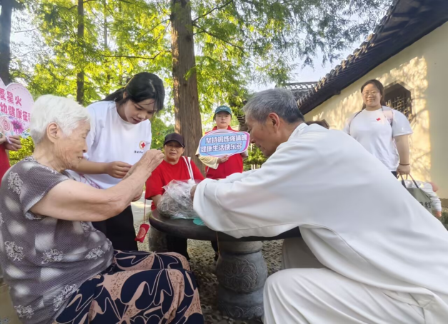 传统文化巧融合,健康理念润无声。在公园的凉亭里,志愿者带着孩子们手绘风筝。五彩缤纷的图案在阳光下格外鲜艳,孩子们在欢乐的氛围中学习健康知识。另一边,几位老人正在志愿者的指导下制作艾草香囊。志愿者一边帮老人装艾草,一边讲解养生知识。“香囊里的艾叶可以驱蚊,”72岁的王奶奶笑着说。活动最后,志愿者与老人们打起了舒缓的太极拳,现场其乐融融。