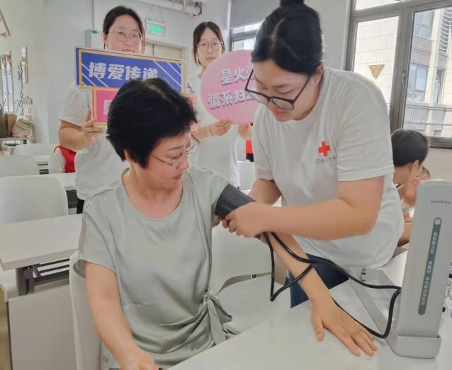 贴心服务:从"小"到"老"全覆盖。活动现场,志愿者们针对不同年龄段人群的需求,提供了全方位的健康服务。在健康检测区,测量血压的摊位前排起了长队。“阿姨,您的血压有点偏高,平时要注意......”护理专业的周涛一边测量,一边耐心地为每位居民解读结果,并给出个性化的健康建议。防诈宣传区也围满了老年人。志愿者们用真实案例,揭秘“保健品诈骗”“神医神药”等常见骗局。“这些大学生讲得太实在了,都是我们老年人容易上当的套路。”72岁的刘奶奶拿着防诈手册认真地说。调研区的志愿者们则忙着收集居民的健康需求。“您最想了解哪方面的健康知识?”“您觉得社区还需要哪些医疗服务?”一个个问题既专业又贴心。据统计,当天共收回有效问卷120余份,为后续开展精准服务提供了重要参考。