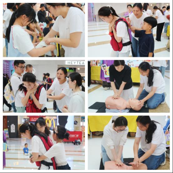 活动聚焦家庭应急能力提升,精心设计双线体验场景。针对青少年,志愿者以寓教于乐的形式指导孩子们拨打急救电话、处理简单外伤,并对关键技能进行趣味考核;家长们则在一旁系统学习海姆立克急救法与心肺复苏术,并在志愿者的指导下进行规范操作演练。掌握技能的家庭还可参与抽奖,赢取含有急救知识的冰箱贴、降温贴、急救包、急救主题盲盒、扇子等实用纪念品,让安全守护真正融入日常视野。