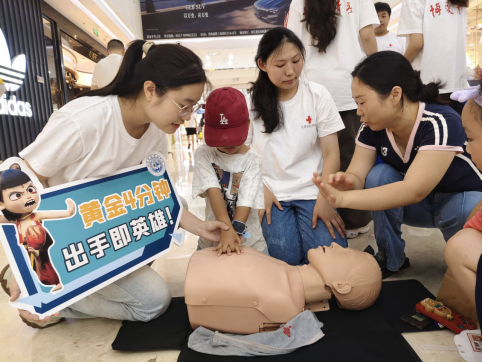 童趣教学,急救启蒙。“哪吒哪吒,有人流血了怎么办?”在华信Mall购物中心、金地Mall,化身热门电影角色哪吒、敖丙的志愿者,瞬间吸引了众多孩子的目光。他们巧妙地将拨打急救电话、处理简单外伤等基本急救技能融入角色互动和生动示范,让孩子们在轻松愉快的氛围中掌握初步的自救互救本领。新颖的形式令家长们赞不绝口:“孩子们学得又快又好,这种寓教于乐的方式太有效了!”