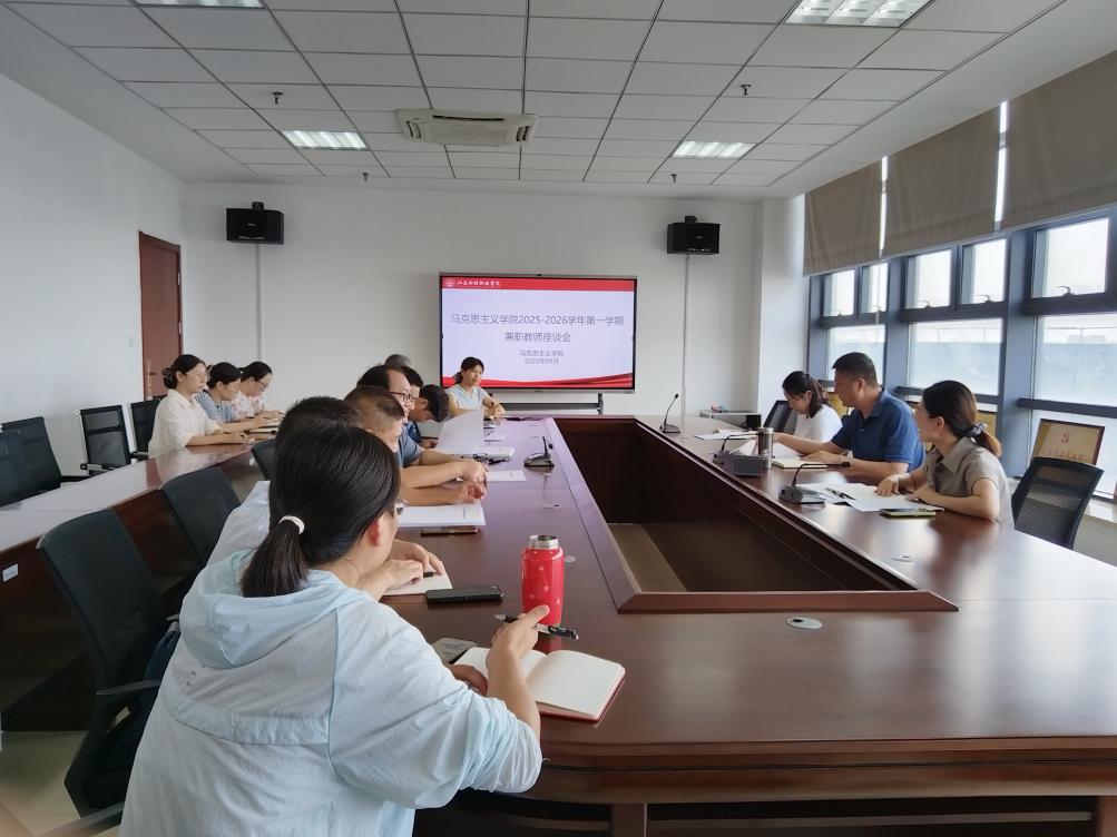 为进一步提高思政课教育教学质量,促进思政课教学改革创新,更好落实立德树人根本任务,马克思主义学院于2025年9月5日下午召开了2025-2026学年第一学期兼职教师座谈会。学院领导、各教研室主任、全体兼职教师参加座谈会。会议由副院长潘园园主持。