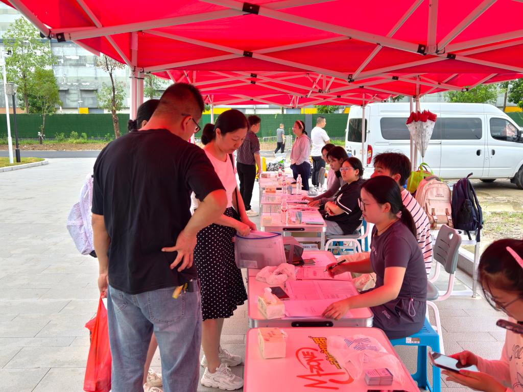 迎新当日,学院全体辅导员、新生班主任与190名志愿者早早到位。新生抵达后,志愿者主动上前接过行李,引导至报到窗口;班主任逐一核对新生学籍信息,收取录取通知书与档案材料,同步讲解报到注意事项;工作人员高效发放校园一卡通、新生手册等物资。针对新生提出的课程安排、宿舍设施等疑问,志愿者与老师耐心细致解答,让新生初入校园便感受到温暖。