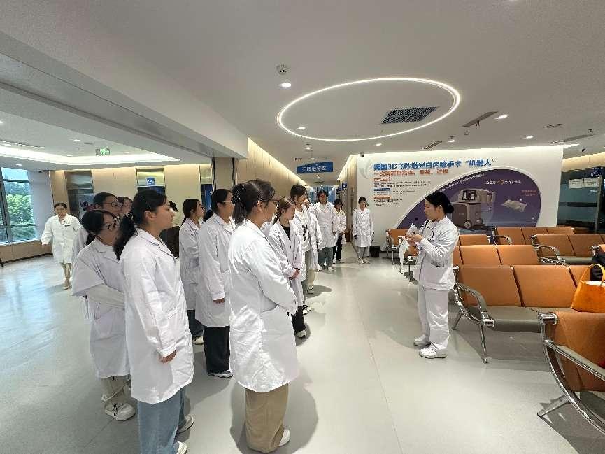 活动分为医疗场景参观、眼健康科普知识学习、专业理论知识讲授和仪器设备操作体验四个阶段。在视光科主任蒋笑和有关医护人员的带领下,同学们分别参观了医院1至4楼科室,近距离观察眼科诊疗场景,直观感受医院工作节奏与服务模式;在眼健康科普馆,系统学习眼健康知识,拓宽专业视野。