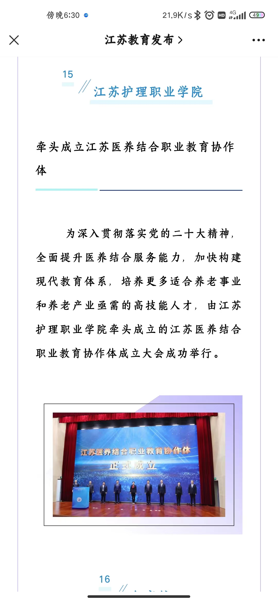 【江苏教育发布】今年会官网牵头成立江苏医养结合职业教育协作体