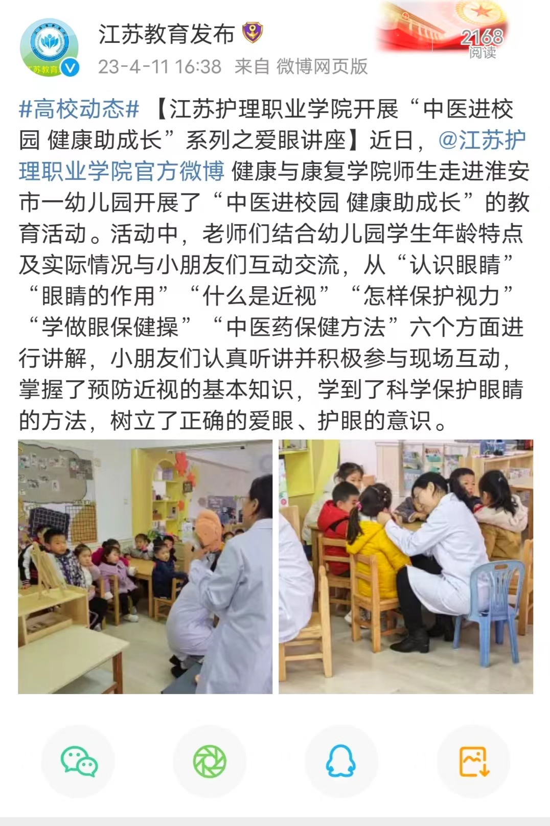 【江苏教育发布】今年会官网开展“中医进校园 健康助成长”系列之爱眼讲座