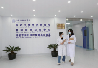 江苏省消化及生殖系统肿瘤精准防治工程研究中心由江苏省发展和改革委员会正式批准设立,下设生物医学研究所(淮安市消化道肿瘤重点实验室)、医学遗传与生殖免疫学研究所。建有细胞生物学、分子生物学和小动物实验等研究平台。拥有NIKON 超分辨共聚焦显微镜(Ti2-E-AX-N-SIM S)、SONY微流控芯片分选型流式细胞仪(MA900)、SONY全光谱分析型流式细胞仪(SA3800)、安捷伦NovoCyte Advanteon个人型流式细胞仪、SimpleProtein全自动westernblot仪(Jess)、小动物活体成像仪(Fusion)、美天旎8道 MACS 组织细胞分离仪(gentleMACS)、ABI实时荧光定量PCR仪(Quant Studio5)、0lympus倒置荧光显微镜(IX73)、Olympus倒置显微镜(IX73)、Olympus正置荧光显微镜(BX53)、program荧光报告基因检测仪和Bio-Rad电转仪等大中型细胞、分子和整体动物研究设备。可为各附属医院、教学医院的科学研究,医药生物企业的产品研发提供平台服务和技术支撑。