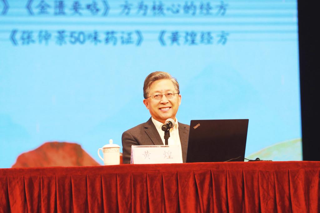 在讲座中,黄教授以《生活中的经方》为题,以经方大柴胡汤、小柴胡汤为切入点,运用“方-病-人”一体化的诊疗思路,深入浅出地讲解了经方的奥妙和临床应用。他用简洁易懂的语言解读了经方,用鲜活的人物形象解释了药症、方证的基本特征,使枯燥的经典条文和经方变得生动、立体。教师们听得如痴如醉,仿佛置身于一个神奇的中医药世界。讲座结束后,黄教授还和现场的教师们进行了互动交流并合影留念。